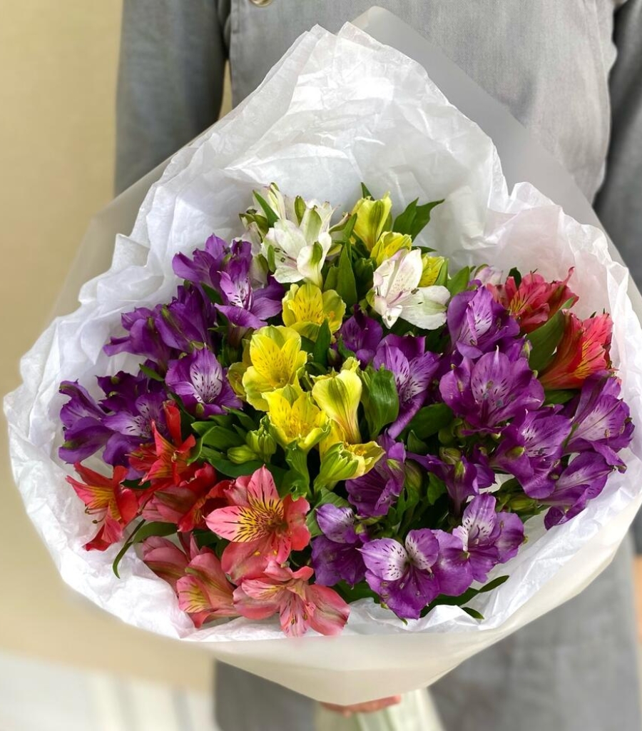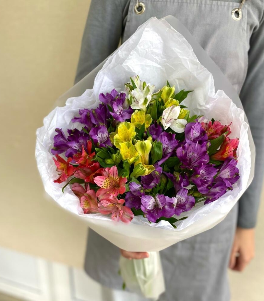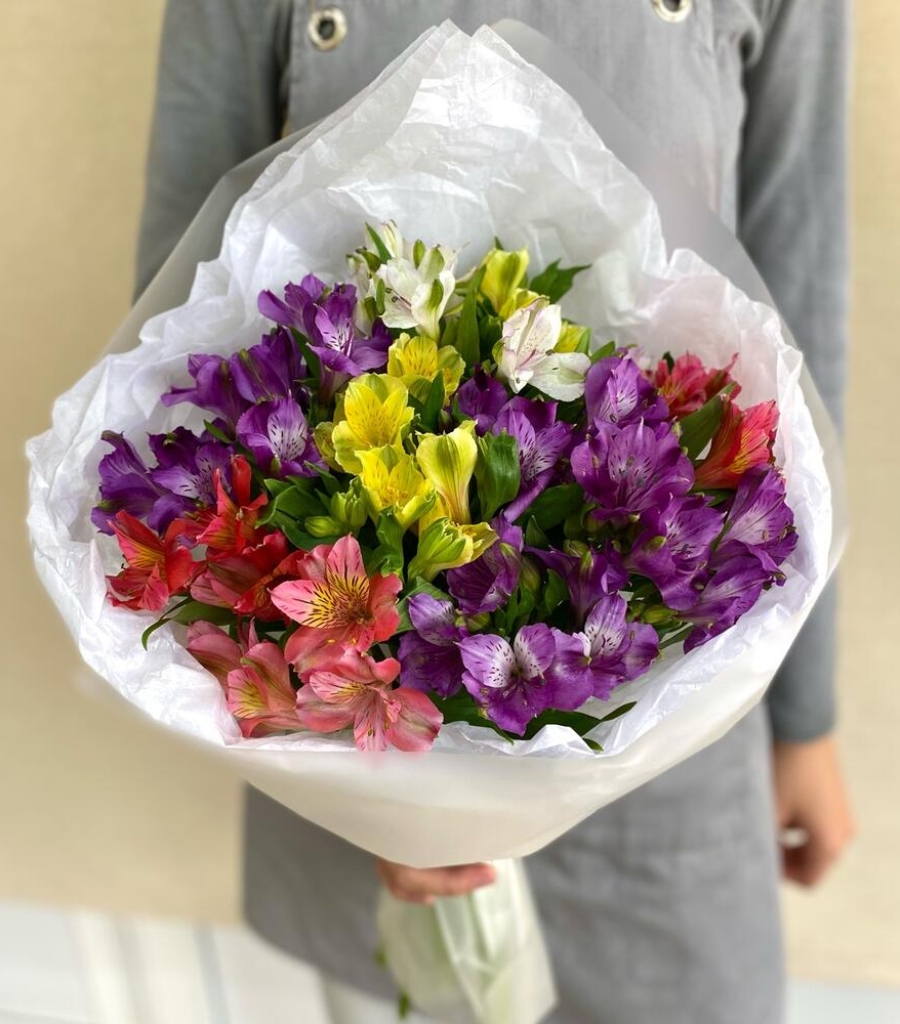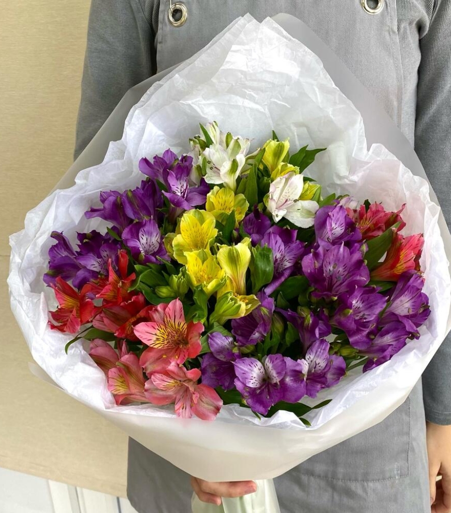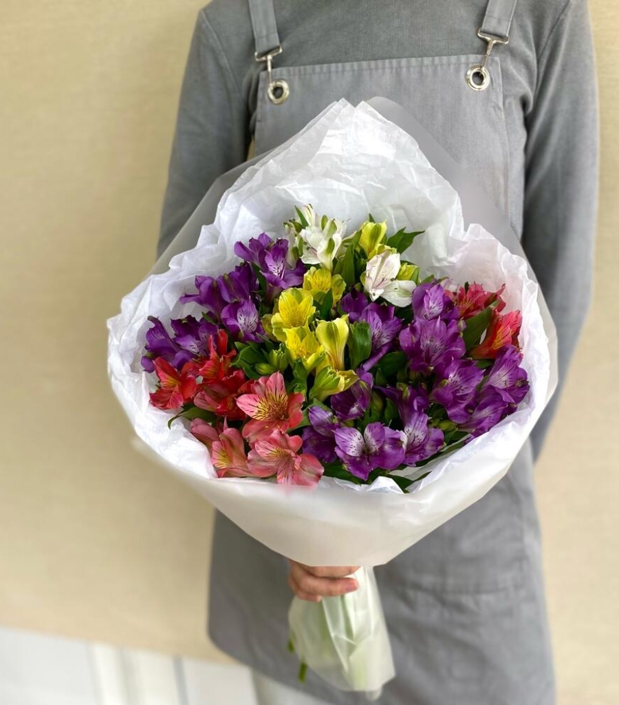 Альстромерия - 13 шт. Упаковка дизайнерская - 3 шт. Кризал (подкормка) - 1 шт.