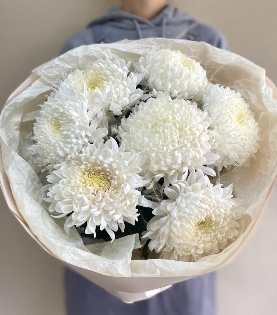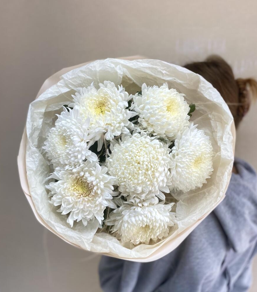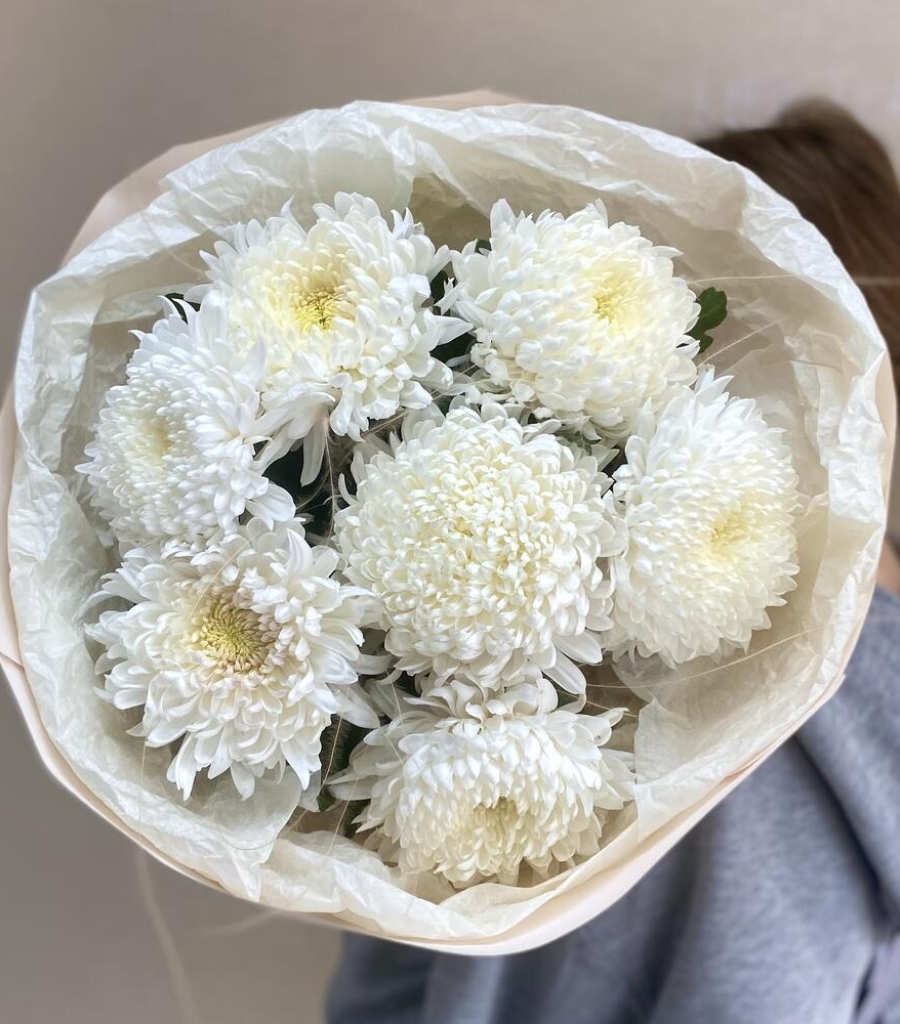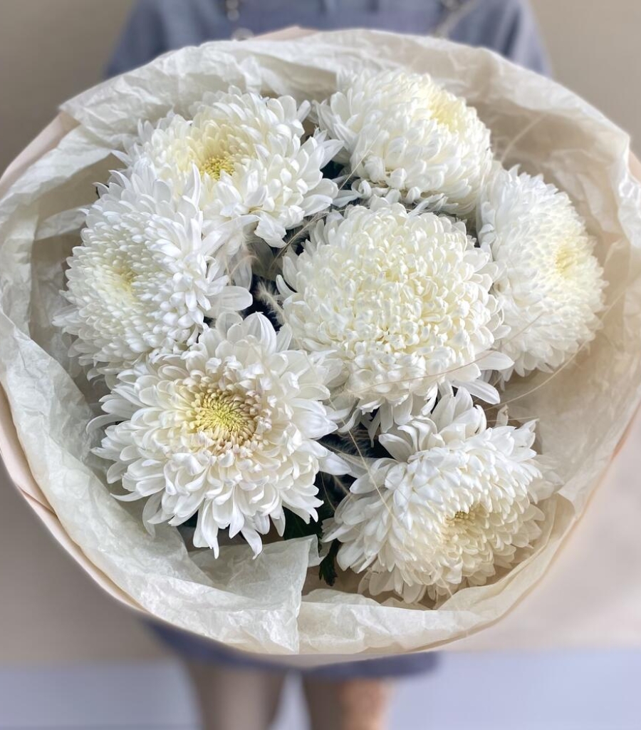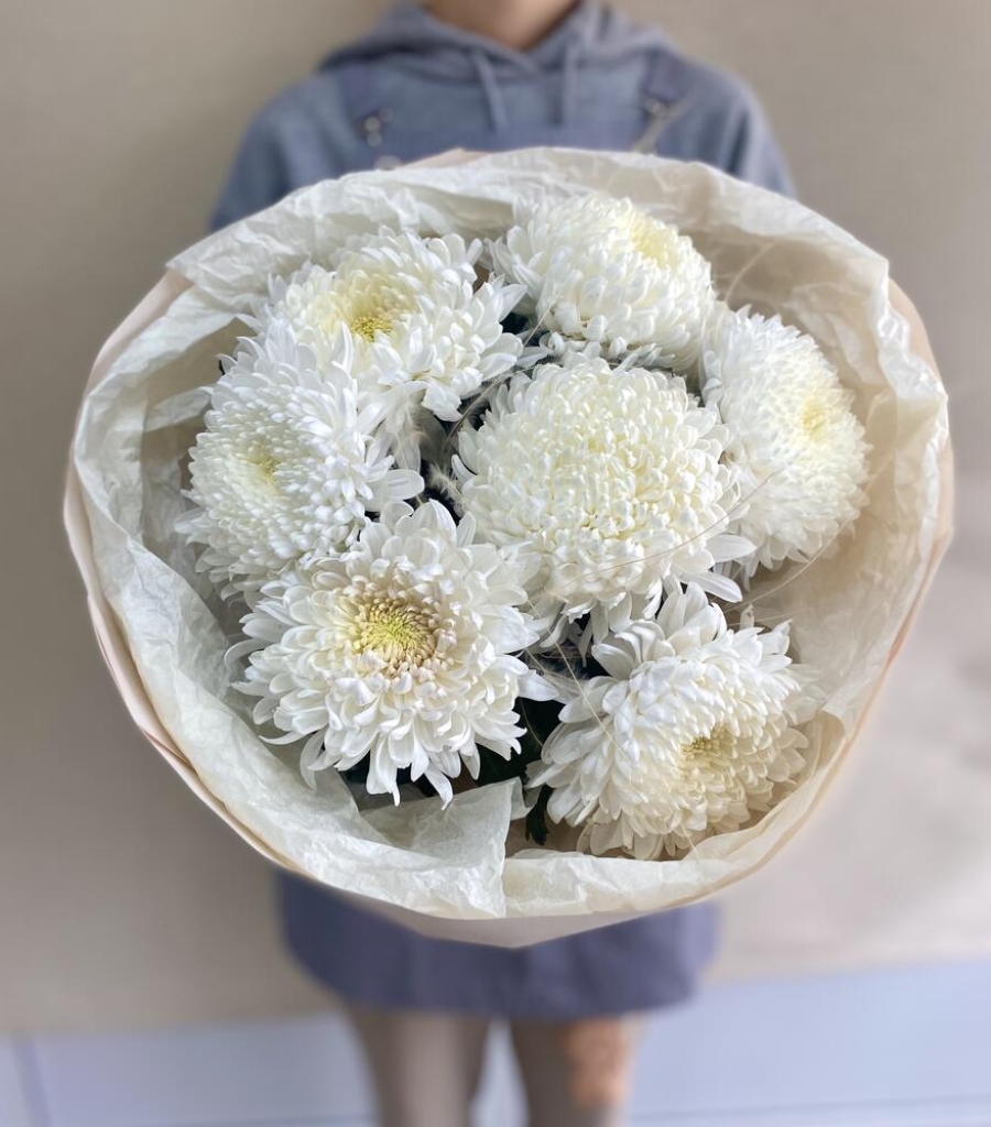Упаковка дизайнерская - 2 шт. Кризал (подкормка) - 1 шт. Хризантема одноголовая белая - 7 шт. ковыль пучок - 3 шт.